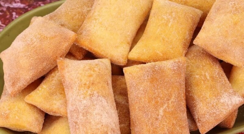 7. Retire-os do óleo, deixe escorrer no papel toalha e empane no açúcar e canela em pó.