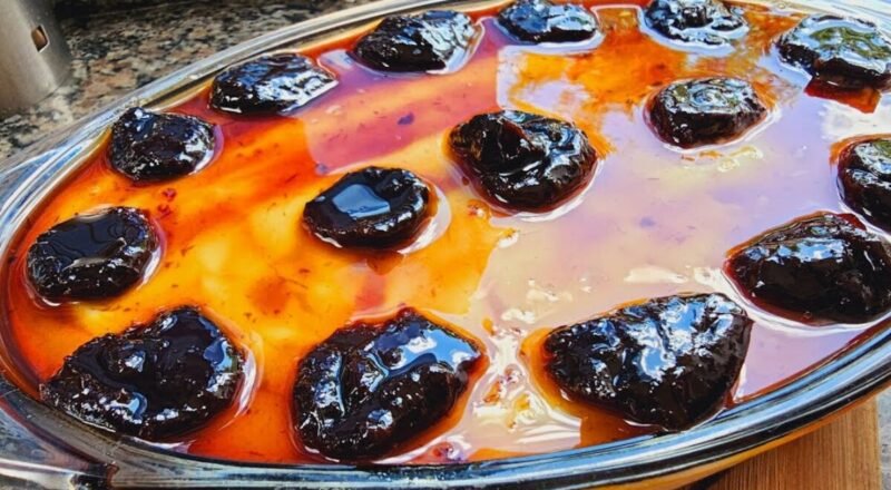 - Retire da geladeira, cubra com o restante da calda com ameixas e sirva.